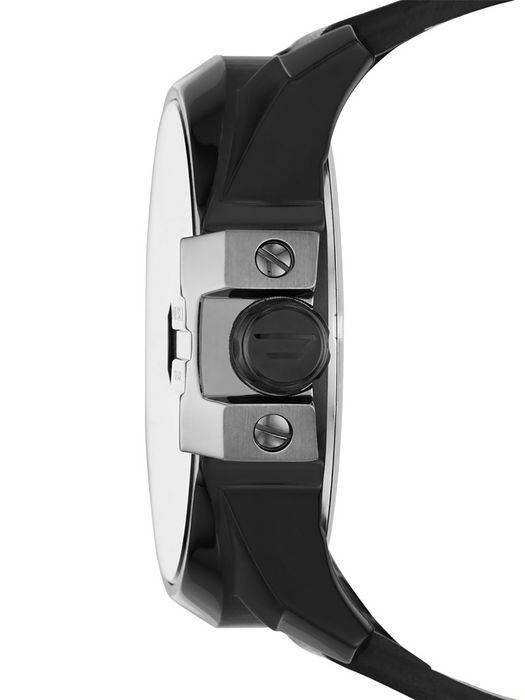 Dominate the field in the black IP Diesel Uber Chief watch. The textured white chronograph dial features applied shiny black arabics with black tracking and a smoke-colored crystal, complemented by a dark brown leather strap.
