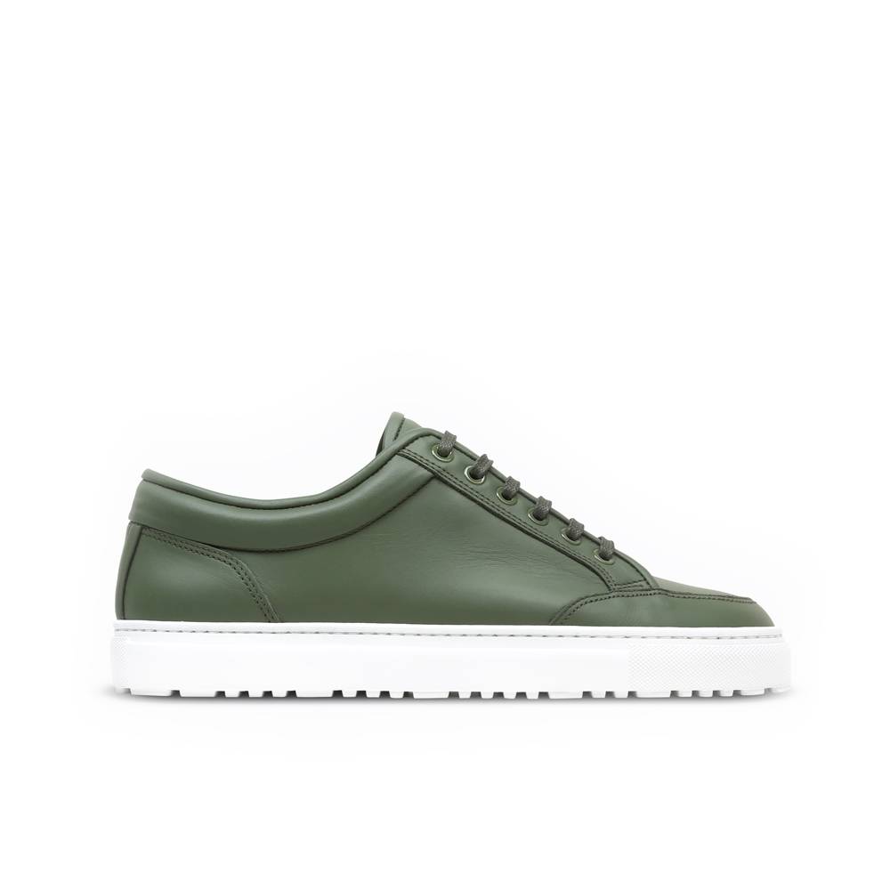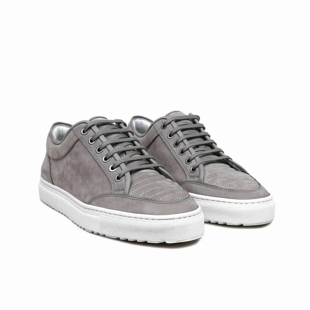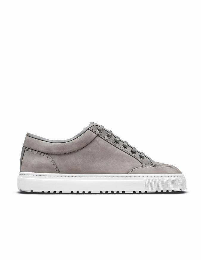 Low-top nubuck leather sneaker in Alloy. Features a tonal leather trim and lace-up closure as well as ribbed detailing. Dark chrome eyelets and a white rugged rubber cup sole unit. Full calf leather lining and insole. Comes in a branded box with a spare set of waxed laces.